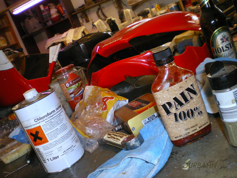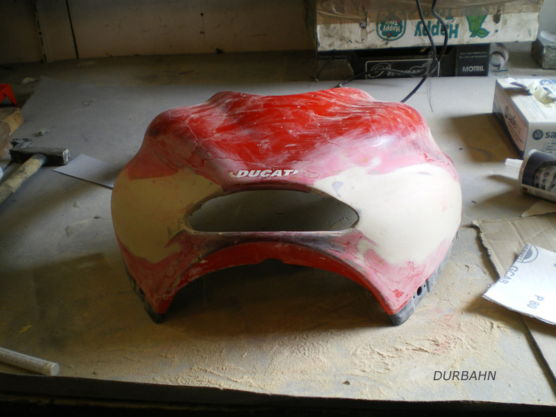 I still have to fab a combined Fairing /Dashboard-stay for my own 1098-Project..... and I'm in a rush. So I thought I just use the Mold to build a Prototype of the Desmo-Stay from Glass, which I can rework then to meet my requirements.