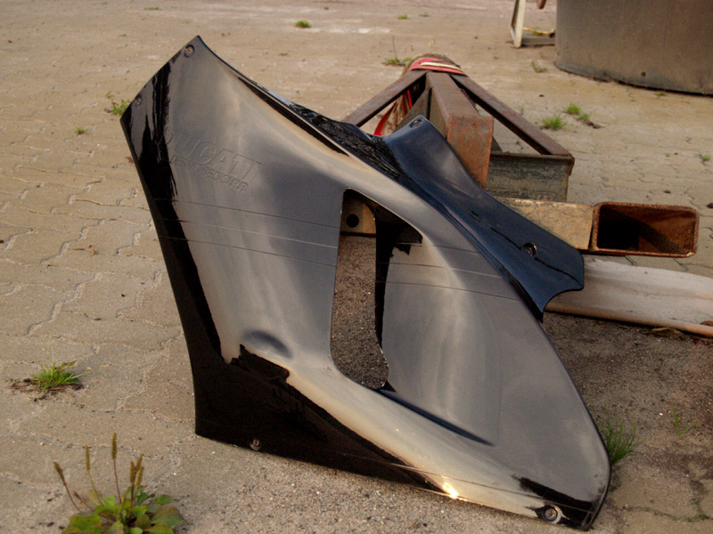 First Desmo lower Fairing is done, out of the mould , here inside Comparison, OEM and mine :
