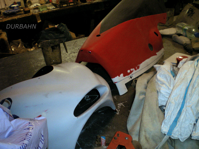 Desmofront and lower fairing OEM Parts sanded and prepared to build the mold.
