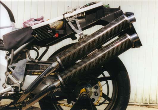 Stock 4 Pipes into 2 Carbon Silencer,no cutting at fairing,stainless Steel,polished