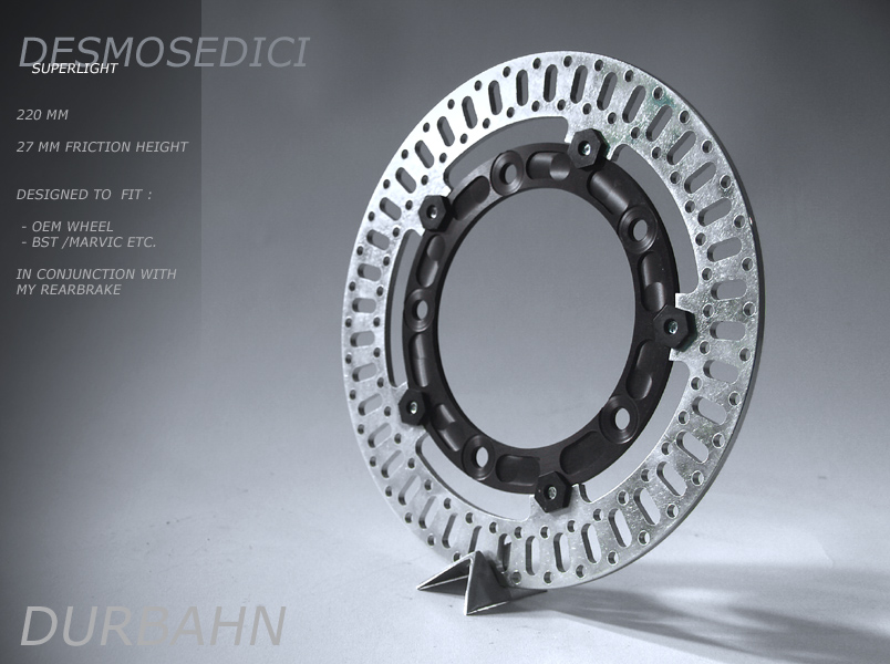 A 220- 240mm light Brakedisc ( for OEM Bolt Pattern or BST... etc Wheels ), in 220mm Diameter for Durbahn rear superlight rear Brake Setup - /or 240mm for OEM rear brake Setup.