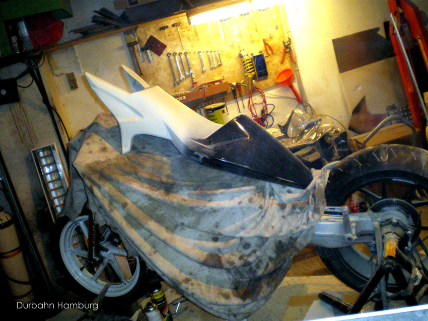 BTW - Finn from Denmark started . He took a close to new OEM RC30 fairing and began to treat it with sandpaper :